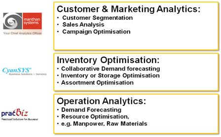 Enterprises in the retail and wholesale sectors can look forward to a comprehensive suite of Business Analytics (BA) shared services to enhance their competitiveness starting mid 2013. These services, to be deployed on shared infrastructure, will enhance enterprises' capabilities in Customer & Marketing Analytics, Inventory Optimisation and Operations Analytics.